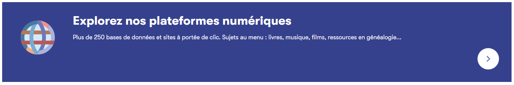 Une plateforme numérique réunit un ensemble de contenus qu’elle met à la disposition des gens. Les plateformes accessibles via le site de BAnQ regroupent entre autres des livres numériques et audionumériques, des articles scientifiques, des revues, de la musique et des films.
