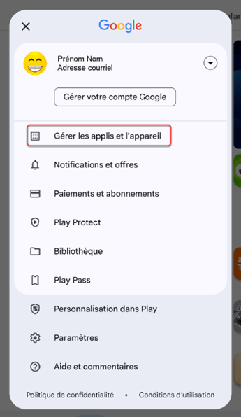 3. Cliquez sur Gérer les applis et l’appareil