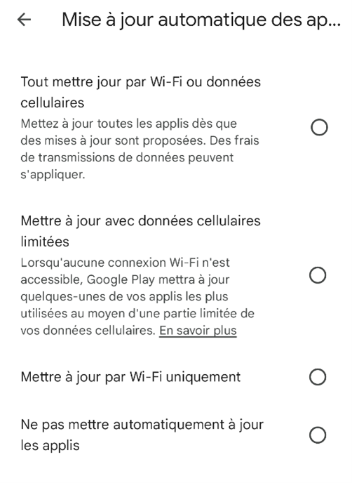 5. Cliquez sur Mise à jour automatique des applis