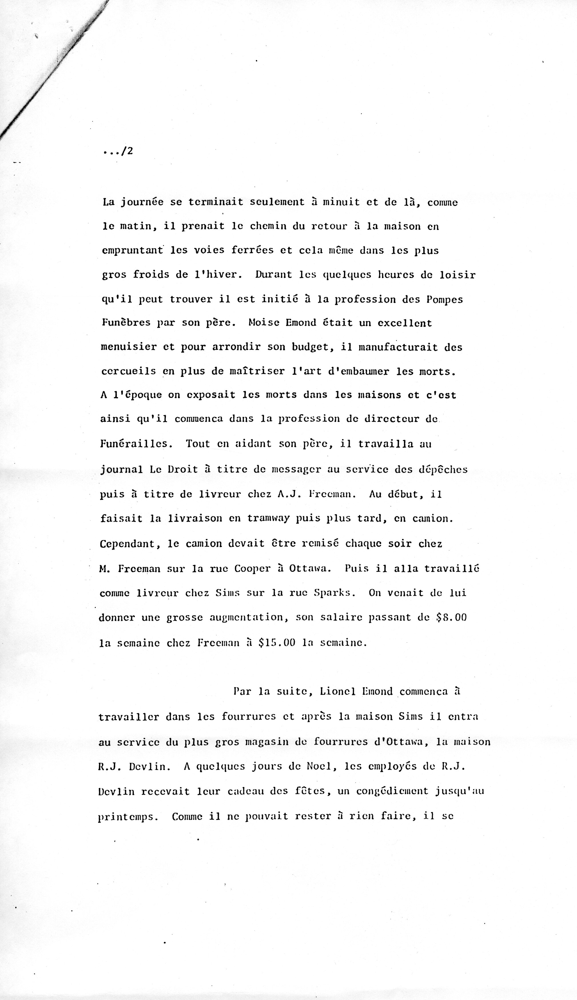 Extrait d’un mémoire de Lionel Émond, [1976], [p. 2-3]. Archives nationales à Gatineau, fonds Lionel Émond (P97, S1, D1).