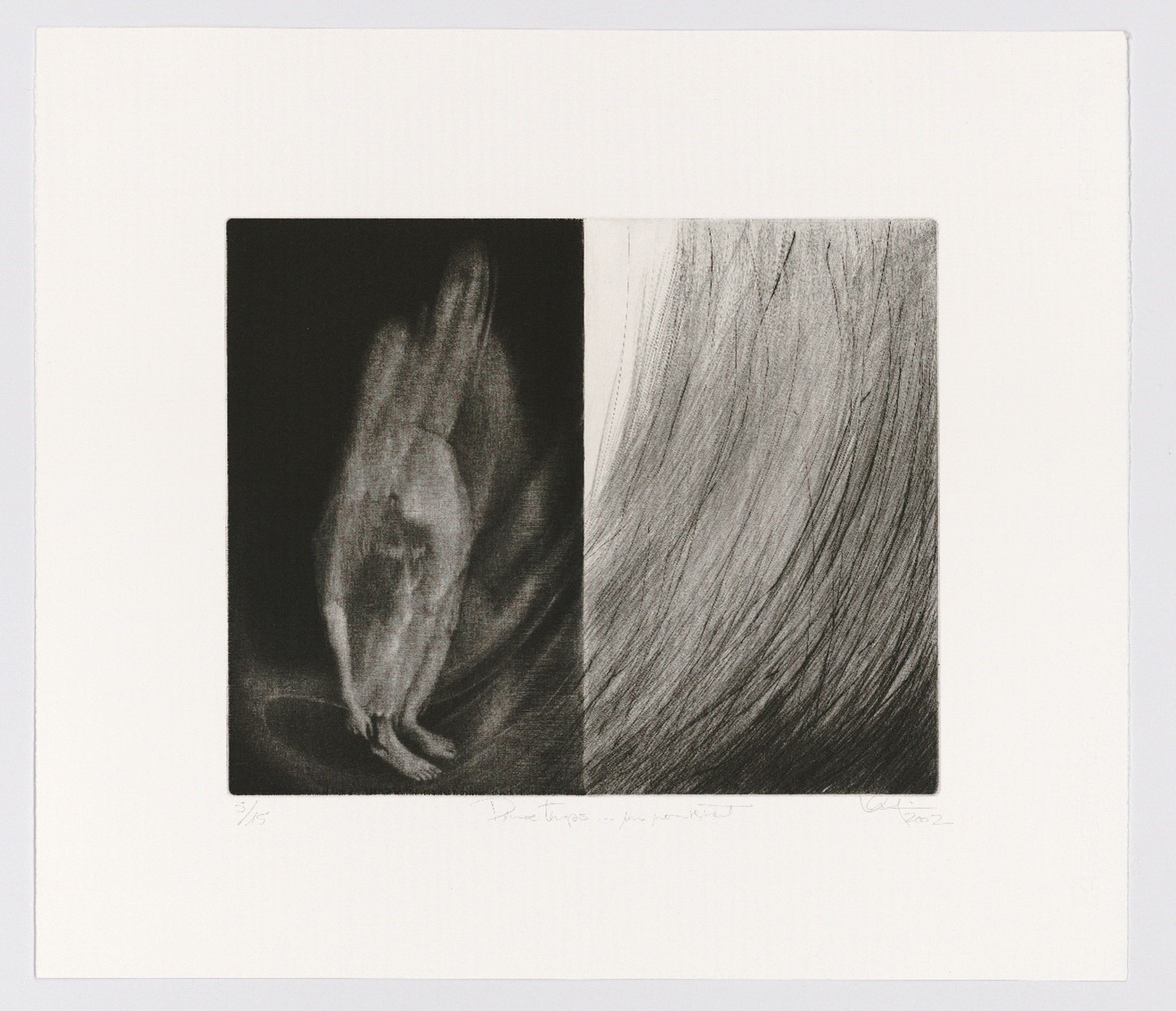 LANGEVIN, Guy, Deux temps - un mouvement, estampe (pointe-sèche), 50 x 58 cm, Trois-Rivières, Atelier Presse Papier, 2002. Photo : Guy Langevin.