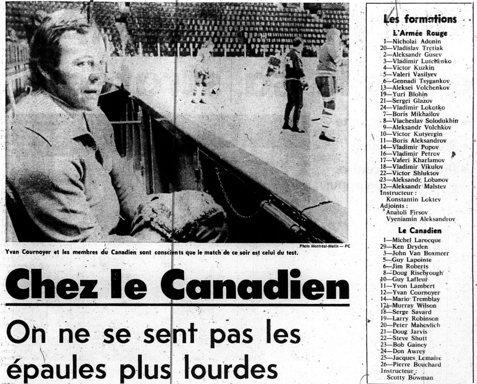 « Nous connaissons l'importance de la rencontre et nous savons à quoi nous attendre. Les Soviétiques forment une équipe puissante et ce sera un match difficile, mais nous avons toujours su surmonter les obstacles », explique le capitaine du Canadien, Yvan Cournoyer (Montréal-Matin, 31 décembre 1975).