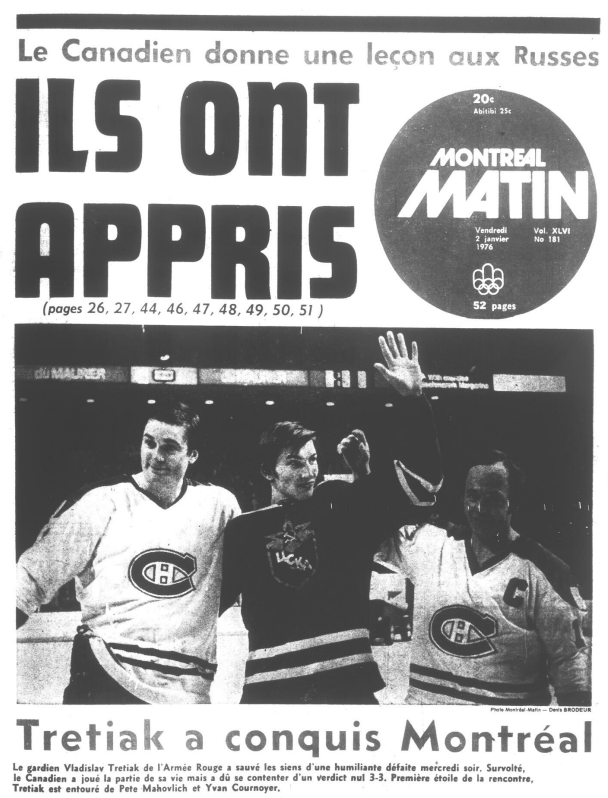 « Au cours de ce match, le Canadien a démontré qu’il possédait l’une des plus grandes machines dans le monde du hockey. On peut dire que sa grande vitesse a étourdi les joueurs de l’Armée rouge et sans un travail merveilleux de Vladislav Tretiak, les protégés de l’entraîneur Scotty Bowman I’auraient emporté avec facilité », relate le journaliste Pierre Gobeil (Montréal-Matin, 2 janvier 1976).