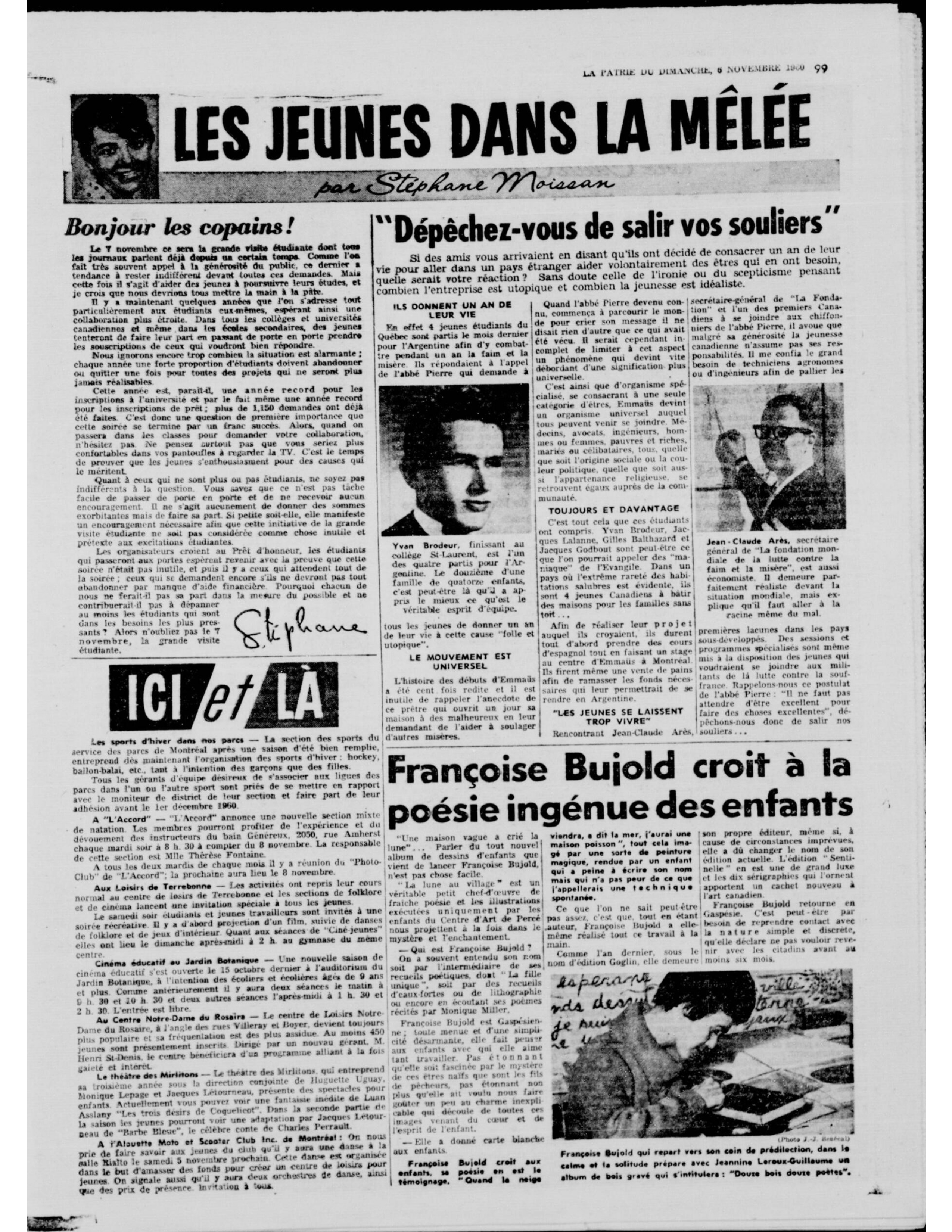 [Note 8] Marthe Pagé, « Au catalogue des solitudes, recueil de poésies de Françoise Bujold », dans Maurice Lemire, Dictionnaire des œuvres littéraires du Québec, tome 3 (1940-1959), Montréal, Fides, 1978, p. 76-77.