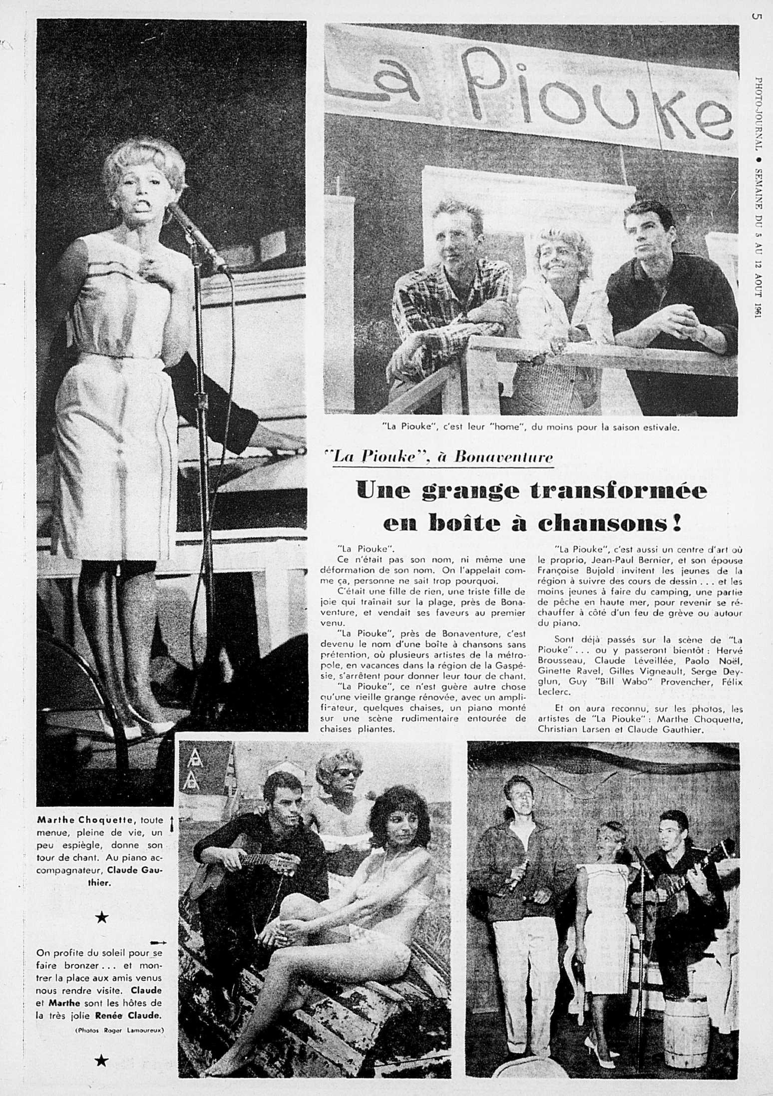 [Note 4] « Une grange transformée en boîte à chansons ! », Photo-Journal, 12 août 1961, p. 5.