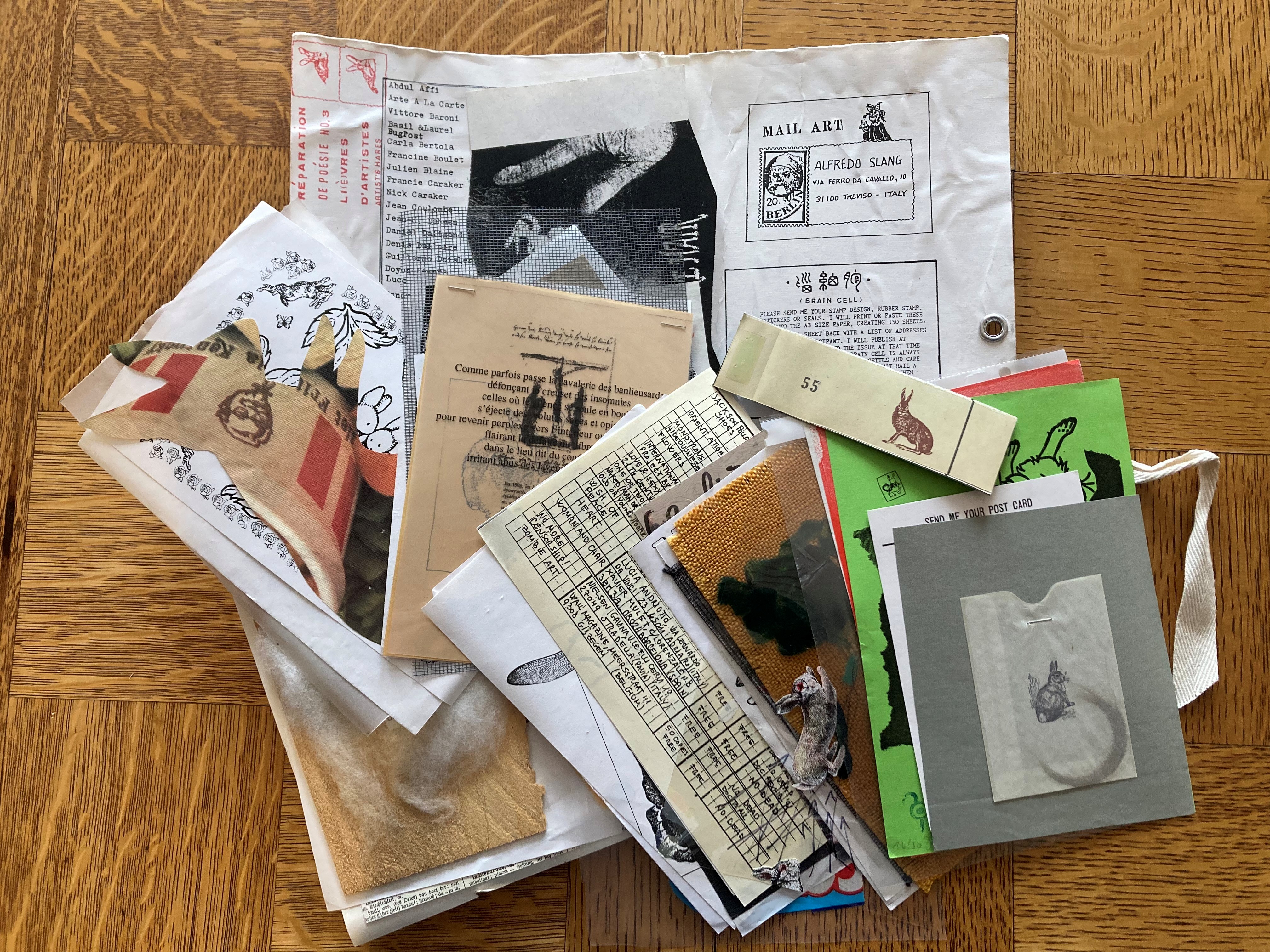 Plusieurs œuvres d’art postal ont trouvé leur place parmi la collection de livres d’artistes de la Bibliothèque nationale. Dès les années 1960, des artistes éditent des reproductions de leurs œuvres sous forme de cartes postales et créent des timbres d’artistes ou des œuvres sous forme de correspondance artistique ou littéraire. Des initiatives collectives voient aussi le jour, rassemblant dans une même édition les contributions de plusieurs artistes. On peut penser à L’épars pillé du collectif Art Terre ou à quelques éditions spéciales du périodique Stamp Axe.