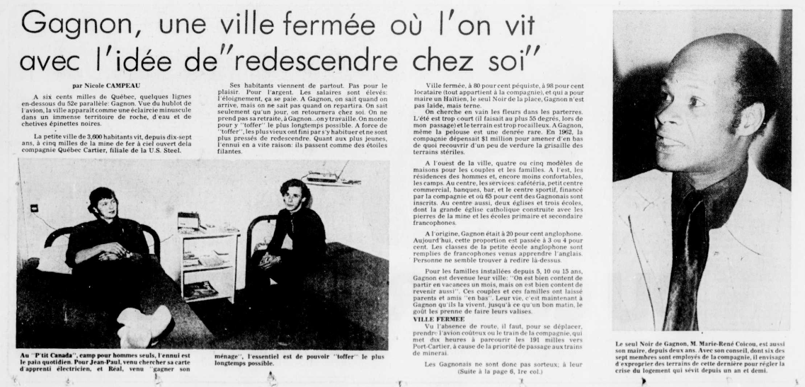Parti d’Haïti pour s’établir à Montréal à la fin des années 1950, René Coicou met ensuite le cap vers Gagnon, « jeune » ville minière de la Côte-Nord où le travail abonde. À l’époque, nombreux sont les travailleurs qui « montent » acquérir de l’expérience ou « faire un coup d’argent » avant de redescendre dans le Sud. René Coicou, lui, restera.