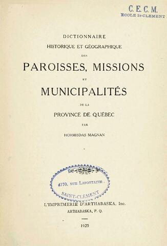 Communément appelé « le Magnan », ce dictionnaire constitue un outil indispensable afin d’identifier les paroisses comprises dans une municipalité, un village, un diocèse, etc. Il offre la description de 1 130 paroisses et de 138 dessertes ou missions. Chaque entrée présente l’historique du lieu, en situant entre autres l’ouverture du registre et l’érection canonique. L’origine de l’appellation de la paroisse est également fournie.