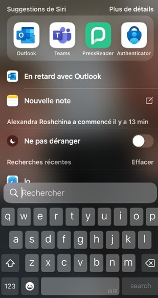 À savoir : pour avoir accès à la fonction de recherche de votre appareil, avec votre index, balayez votre écran vers le bas à partir du milieu.